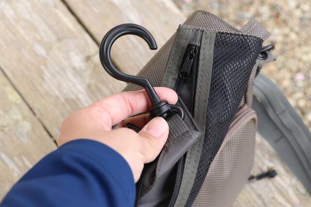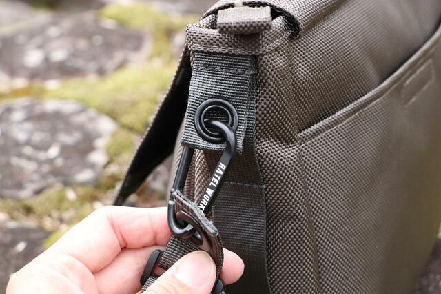 本体とショルダーベルトの部分はカラビナで繋がっていますが、バッグを肩にかける時に身体に当たってたまに外れることがあったので、今後ノーストレスで使い倒すために、ロック付きのカラビナに変更する予定です。