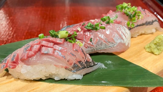 豊洲直送 生あじ握り寿司3貫盛り:599円(税込658円) もっちりとした身とシャリの饗宴。