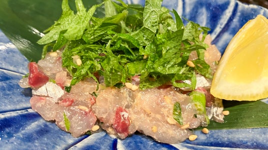 南房総料理 あじなめろう レモン添え:599円(税込658円)新鮮な身と薬味の絶妙な調和。