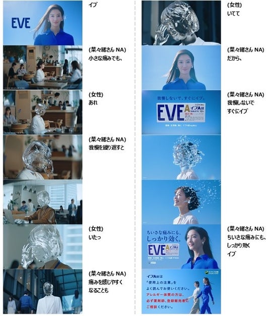 新TVCMでは、カフェやオフィスといった日常のシーンで、頭痛を感じながらも「一時的なものだから」と我慢してしまう女性の姿を、ヒビの入った「ガラスの女性」として象徴的に描いています 。カットが進むごとに増していくヒビと緊迫感のある演出は、放置することで痛みに敏感になってしまうリスクを表現しています 。そこに菜々緒さんが「だから、我慢しないで」と真摯に語りかけ、イブA錠による早期対処を提案します。薬を服用することで晴れやかな表情を見せた女性が、菜々緒さんとともに自信に満ちた笑顔で未来へと歩き出す、希望に満ちたストーリー展開が見どころです 。菜々緒さんのブランドアンバサダー起用について