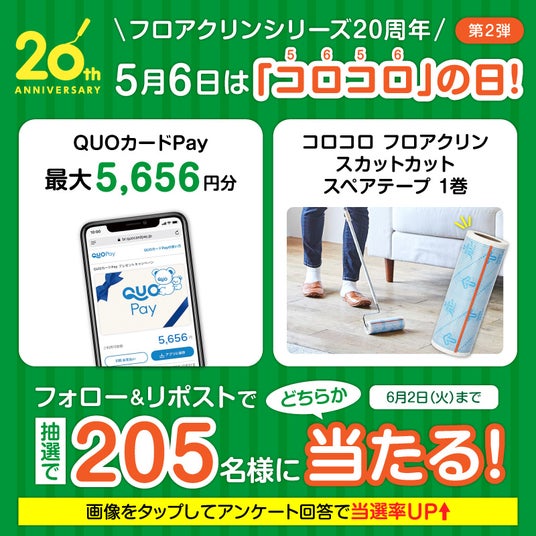 ■コロコロ フロアクリンシリーズ20周年記念 第1弾 5月6日は「コロコロの日」キャンペーンフォロー&リポストで、QUOカードPayが最大5,656円分当たる!