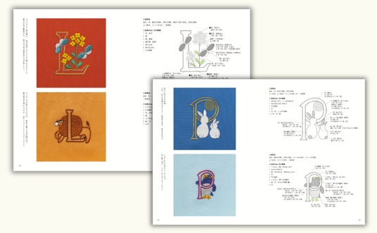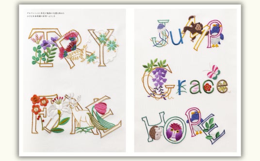 大文字のブロック体に和の文様やポップな動物の文様を絡ませて。糸の扱い方から基本の縫い方までを丁寧に図解。はじめてでも完成できる小さな文様と、徹底した丁寧な図解で、より多くの方に日本刺繡の世界の扉を開きました。