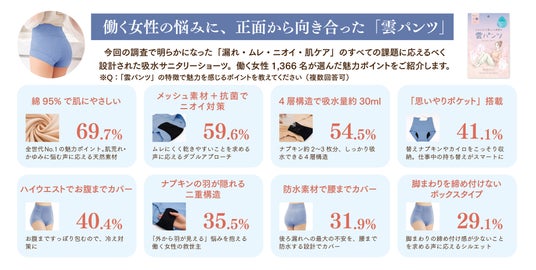 吸水サニタリーショーツ「雲パンツ」は、働くすべての女性の味方になると信じています。