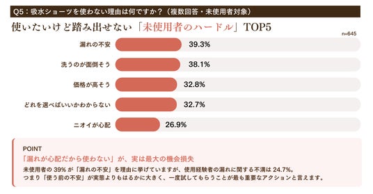 試行錯誤しながら快適さを求めている方が多くいらっしゃる中で「吸水ショーツ」への期待と不安の両方があり、上手く使えてないのでは?と感じました。