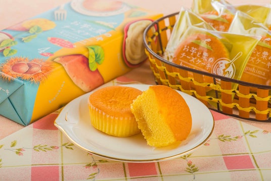 ふんわりとしたソフトな口当たりのチーズケーキに、粒栗を混ぜたさつまいも餡を合わせて。<山福製菓>お芋と栗のチーズケーキ 1箱(8個入)1,080円