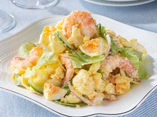 シャキシャキ野菜と海老を、半熟たまごと卵黄のコクと酸味を活かしたソースでまとめたサラダです。お好みのパンを添えるだけで、いつもの食卓がパッと華やぐ、満足感たっぷりのメインサラダです。