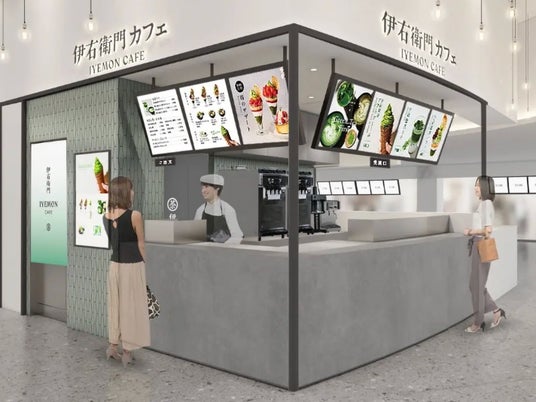 忙しい毎日の中でもクイックに、⽼舗茶舗の厳選茶葉を使用した様々なお茶メニューやスイーツをお愉しみいただくことができる「伊右衛門カフェ」。