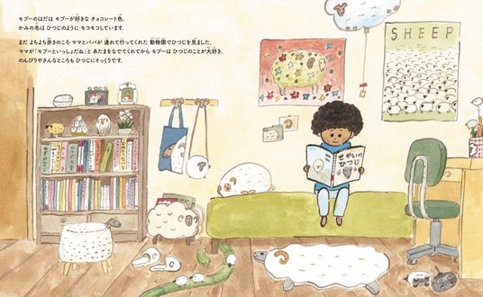 チョコレート色の肌と羊のようなもこもこした髪を持つ小さな男の子、モプー。はじめての学校をとても楽しみにしていたモプーですが、登校するときからモプーはまわりの人から「ヘンダ(変だ)」と注目されてしまいます。すると謎の生き物「ヘンダ」が頭に絡みついてしまいました!