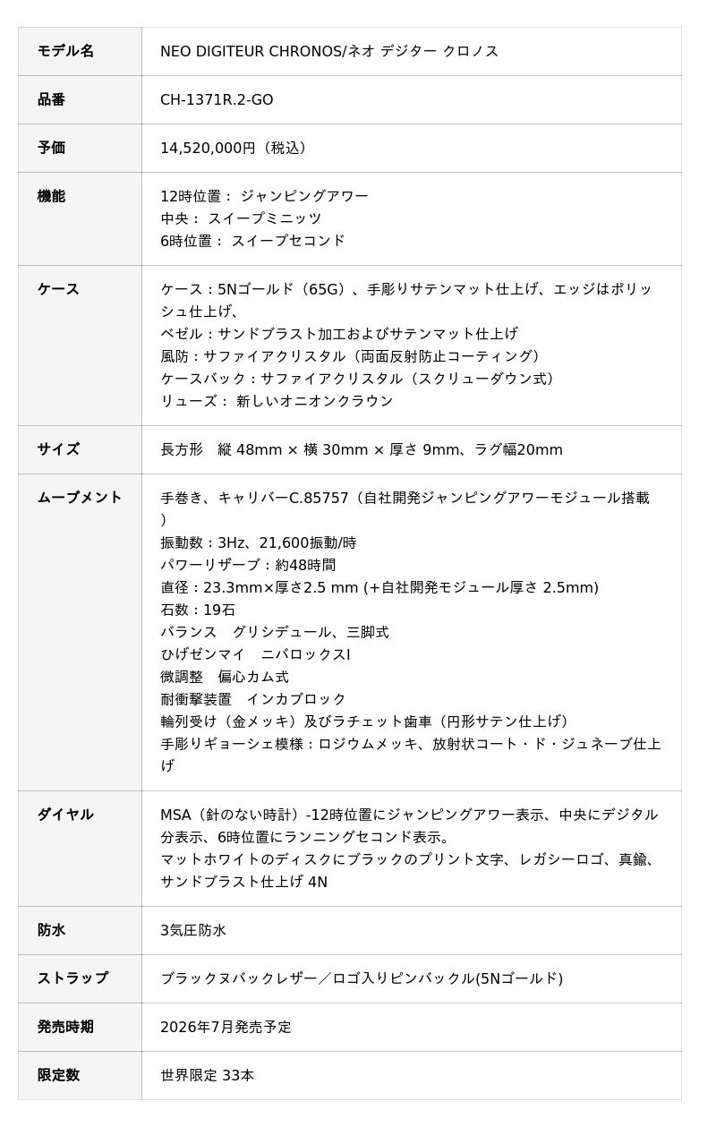『NEO DIGITEUR CHRONOS/ネオ デジター クロノス』は、世界限定33本のスペシャルエディションです。