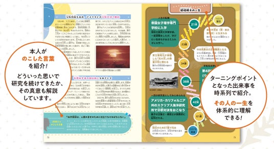 ◎本人がのこした言葉を紹介! どういった思いで研究を続けてきたか、その真意も解説しています。