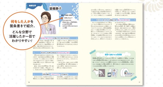 紹介する女性科学者が何をした人か、どんな生涯を送ったのかを簡潔に解説!各人物の最終ページには一生を時系列にして転機や重要な出来事をまとめ、俯瞰してその人の一生を見えるようになっています。