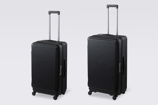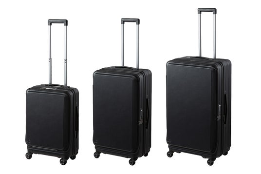 機内持込サイズは立てたまま出し入れできる「縦開き」、預け入れサイズは省スペースで開閉できる「横開き」仕様で、狭い空間でも快適に使えます。