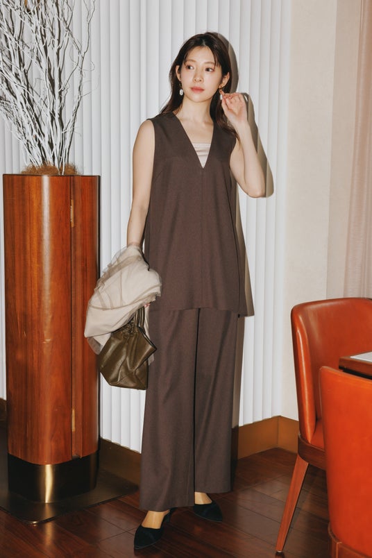 リラックスムード漂うセットアップは、女子会にもぴったり。