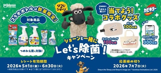 株式会社クオカード(以下当社、本社:東京都中央区、代表取締役社長:近田 剛)が展開するスマートフォンで使えるデジタルギフト「QUOカードPay(クオ・カード ペイ)」は、ジョンソン株式会社が「カビキラーアルコール除菌」と「ひつじのショーン」のコラボレーション企画として開催する「ショーンと一緒にLet's除菌!キャンペーン」で採用されました。本キャンペーンでは、対象商品を1点以上購入したレシートで応募すると、抽選で合計500名様にひつじのショーンコラボグッズやQUOカードPay1,000円分が当たります。