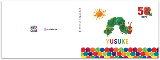 はらぺこあおむし撮影会の写真を収めた「絵本風アルバム」の表紙に、期間限定で50周年記念ロゴをあしらった特別仕様をご用意いたしました。絵本の世界観を大切にした、今だけの限定デザインです。