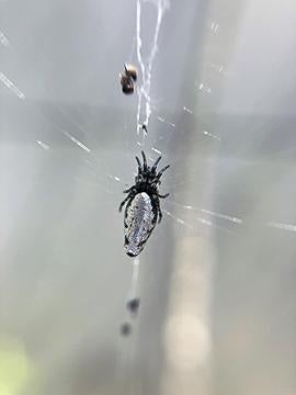 クモの網の標本(72種88点)と液浸標本(111種121体)、生物多様性写真展「ひめじのいきもの」に寄せられた生態写真などで、クモの網の多様性と狩りの技が見られます。