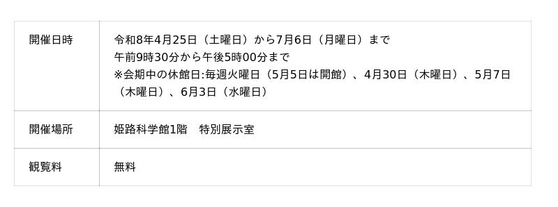 - 主催:姫路科学館- 協力:姶良市、一般社団法人 四万十市観光協会、横浜市教育委員会、くみくみのいどう紙芝居、姫路市立城内図書館