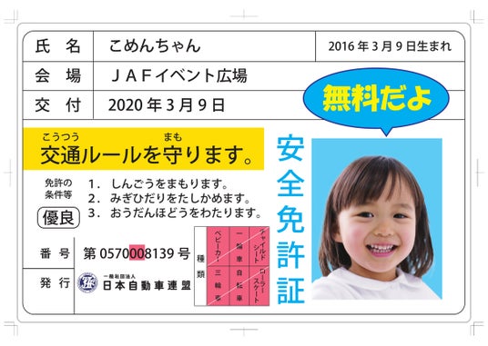 交通安全クイズに答えて、その場で撮影した顔写真入りの免許証型カードを発行します。