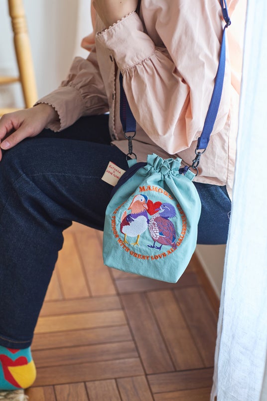 ◆巾着ポーチ小ぶりでコロンとした形が可愛らしい印象。