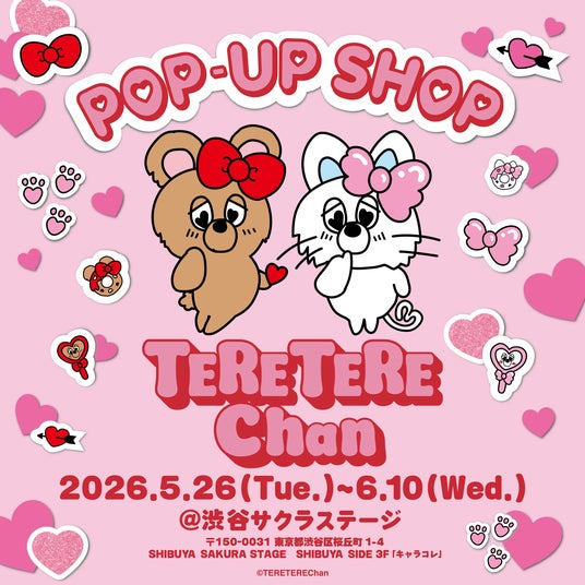 株式会社LINDA.(本社:東京都渋谷区)は、人気キャラクター「TERE TERE Chan(てれてれちゃん)」初となるPOP-UP SHOPを、渋谷サクラステージ(東京都渋谷区)にて2026年5月26日(火)から期間限定で開催します。