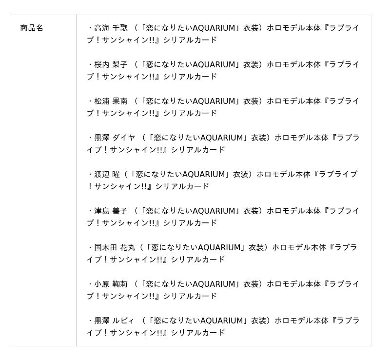 ・『ラブライブ!サンシャイン!!』「恋になりたいAQUARIUM」衣装 ホロモデル本体 全9種