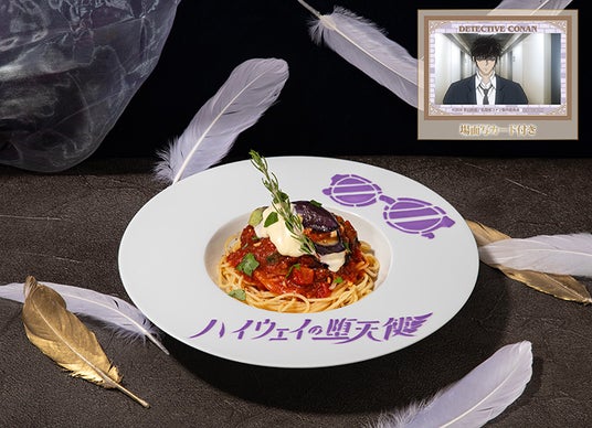 松田陣平をイメージした、ナスのミルフィーユがのったピリ辛アラビアータパスタ。