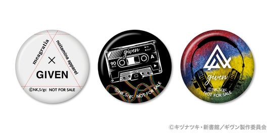 「meagratia × noitamina apparel」商品を対象期間中にご予約いただくと、1点ご購入ごとに、《コラボミニ缶バッジ 3個セット》をプレゼントいたします。