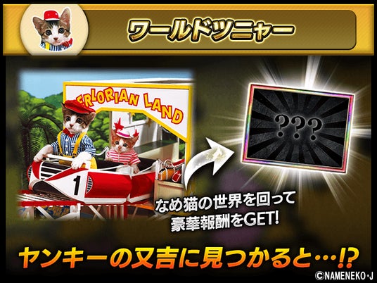「撫でる」か得意技「肉球ぺちぺち」を使って勝利を目指しましょう。勝利数に応じて限定報酬をプレゼント!