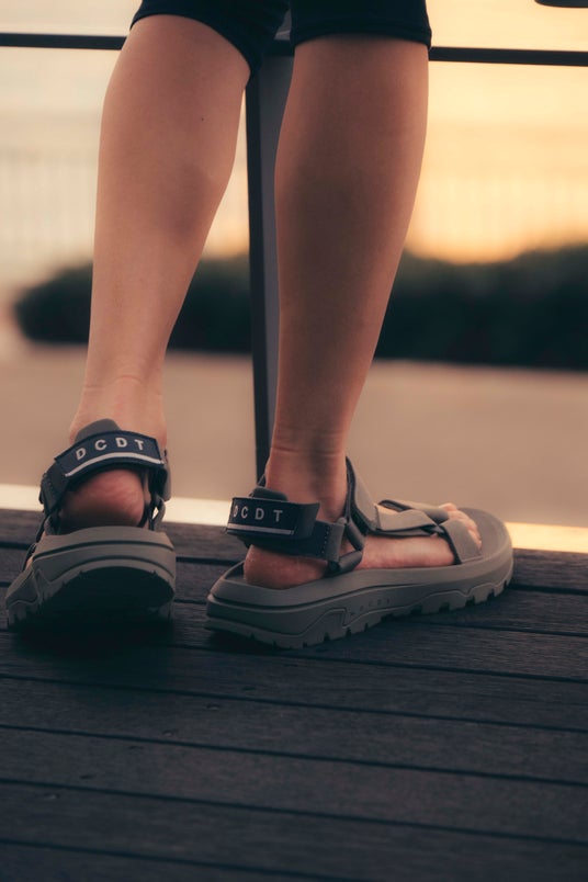 本コラボレーションでは、全体を同系色のグレーでまとめ、洗練されたトーナルカラーに仕上げました。そのカラーには、本作のために製作されたDESCENDANT特注色を採用しています。踵のテープ部分の形状に合わせて、定番デザインのHORIZONラベルを配置。ソールのサイドにはDCDT+CETUSのグラフィックを同系色のグレーでプリントしています。さらに、Tevaのブランドスローガンである「FOR PLAYGROUND EARTH」をテープ裏側にプリントするなど、細部にまで両ブランドのエッセンスを落とし込んだデザインに仕上げました。水辺でも山でも街でも、好奇心の赴くままに自由に快適に楽しみたいという方に最適の1足です。