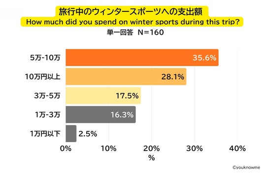 日本のパウダースノーは“JAPOW”と呼ばれ、既にその魅力は世界中の人に知られていますが、東京から新幹線でアクセスの良いエリアを押さえ北海道のニセコが2位にランクインしていること、また、5万円以上の金額をかける人が全体の6割以上ということからも、ウィンタースポーツ好きな外国人観光客にとっては、日本のパウダースノーは来日の大きな動機付けになっていると言えるでしょう。