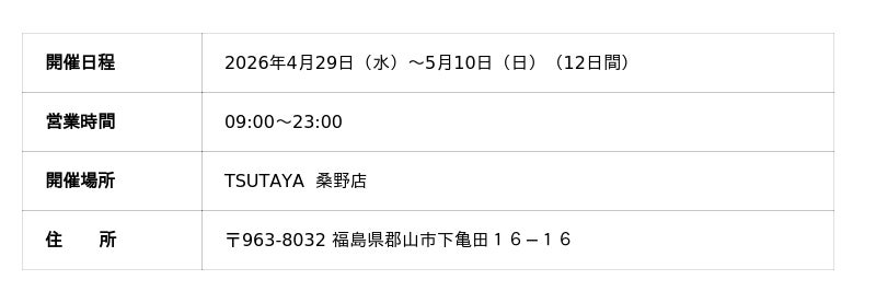 今回は4月29日(水)~5月10日(日)、5月15日(金)~5月24日(日)の計2回にわたり開催されますので、期間中ぜひ余裕を持ってお越しください!