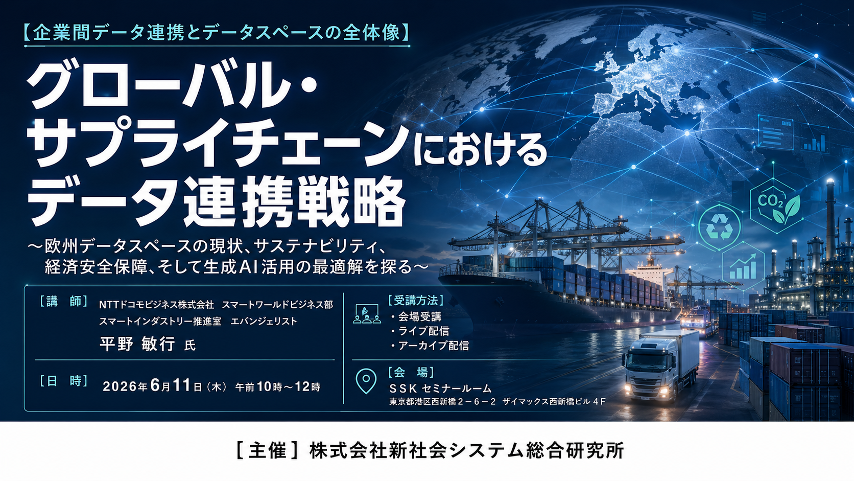 さらに、不安定な地政学リスクを踏まえた経済安全保障の観点や、生成AIが将来的に企業間データ連携に与える革新的な影響も考察します。