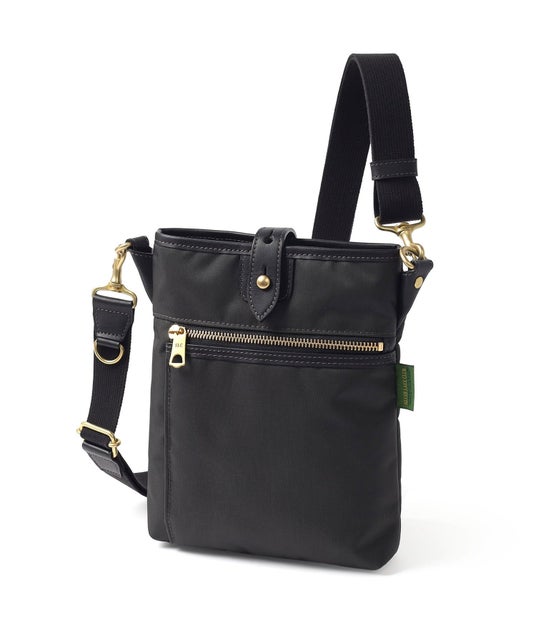 英国トラディショナルな雰囲気のミニショルダーバッグで、コーデュラ糸を用いた高密度オックス生地により軽量かつ高強度を実現。撥水性・防汚性も備えています。