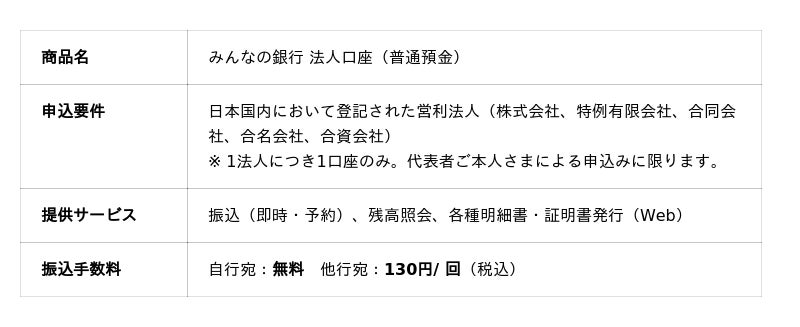 - みんなの銀行で口座開設できるのは、営利法人(株式会社、特例有限会社、合同会社、合名会社、合資会社)に限ります。