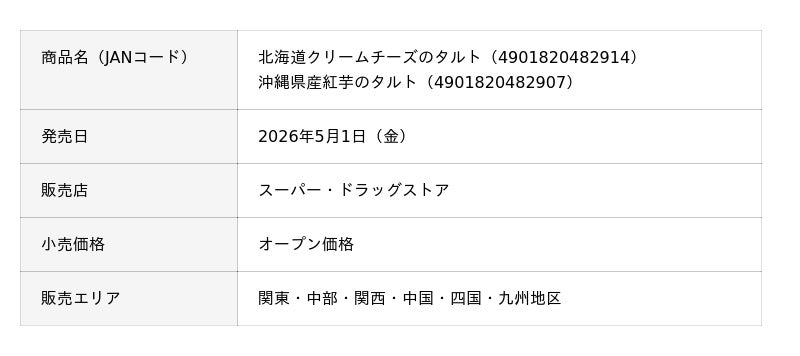 敷島製パン株式会社(Pasco)は、「満たされスイーツ」シリーズの新商品「北海道クリームチーズのタルト」「沖縄県産紅芋のタルト」を2026年5月1日(金)より関東・中部・関西・中国・四国・九州地区で発売します。
