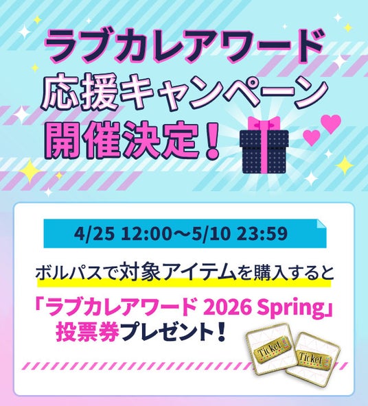 1.投票券プレゼントキャンペーン「ボルパス」にて3,000円(税込)以上のアイテムをご購入いただくと、「ラブカレアワード2026 Spring」の投票券をプレゼントいたします。