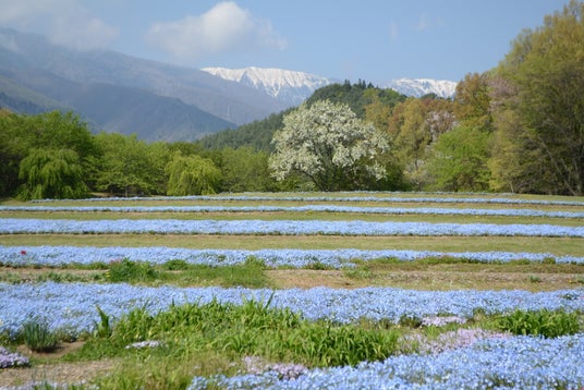 また、今年は穂高口にネモフィラを植栽しております。2,000平方メートル の花壇に3.2万株のネモフィラも見ごろとなっています。
