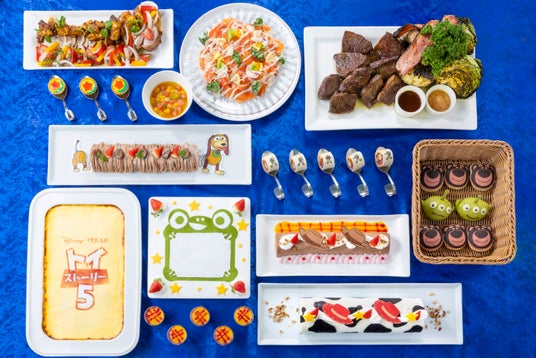 また、東京ディズニーリゾート・トイ・ストーリーホテルを含む3つのディズニーホテルでは、7月1日(水)から9月14日(月)までの間、スペシャルメニューをご用意します。東京ディズニーリゾート・トイ・ストーリーホテルのロッツォ・ガーデンカフェ(ブッフェ)では、カラフルで目にも楽しい期間限定のメニューをご用意します。ディズニーアンバサダー(R)ホテルのチックタック・ダイナー(デリカェ)では、映画に登場するキャラクターをイメージした、ワクワク感あふれるメニューをご用意します。東京ディズニーランドホテルのカンナ(創作料理)では、ポップなデザインがあしらわれたデザートを含むコース料理やお子さまメニューなどがお楽しみいただけます。ドリーマーズ・ラウンジ(ロビーラウンジ)では、さまざまなキャラクターモチーフが目を引くメニューをご用意します。