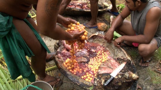 本作には、イルカやウミガメの捕獲・解体や、身体に傷を刻む儀礼の場面が含まれています。これらは人々の生活や儀礼における重要な実践として、文脈を損なわないようあえて残されています。