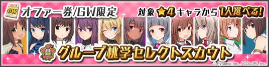 オファー券を一定数集めると、由芽美を含む「桃蔭学園総合高等学校」に縁のあるアクトレスから1名を選んでスカウトできる「グループ桃学セレクトスカウト」が利用できます。