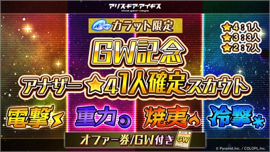 また、「GW記念ダブルピックアップ」などの特定スカウトをカラットでご利用いただくと、「オファー券/GW」が入手できます。