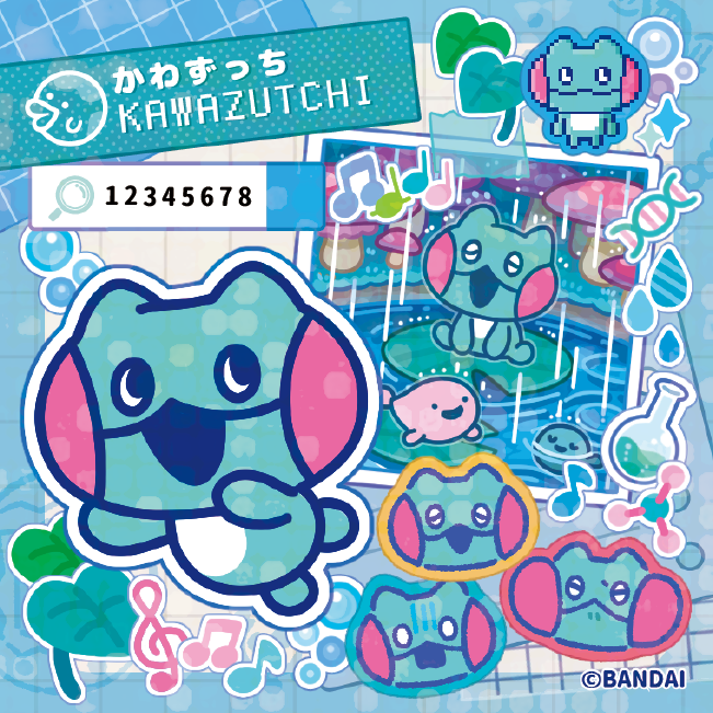 - POP UPストアで1点以上お買い上げのお客様に、『Tamagotchi Paradise』で使用することができる、たまラボステッカー:かわずっちをプレゼント!たまラボステッカーに記載されている8桁のラボコードを『Tamagotchi Paradise』に入力すると、ステッカーに描かれているたまごっちの細胞、“たまさいぼー”の情報を見ることができるよ!(コードの入力方法はこちらから!)