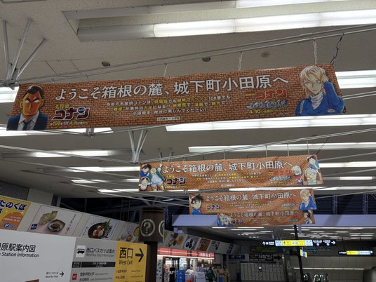 【内容】小田原駅東西コンコース内および小田原地下街「ハルネ小田原」内に「名探偵コナン」の横断幕をはじめ、床ラッピングの実施や、記念撮影コーナーを設置します。