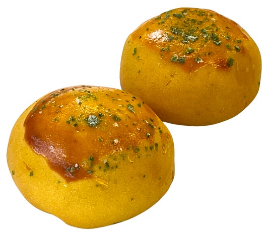 スイートポテト餡をキャラメルポテト生地で包み、天面にはソースに見立てた卵黄を塗り、