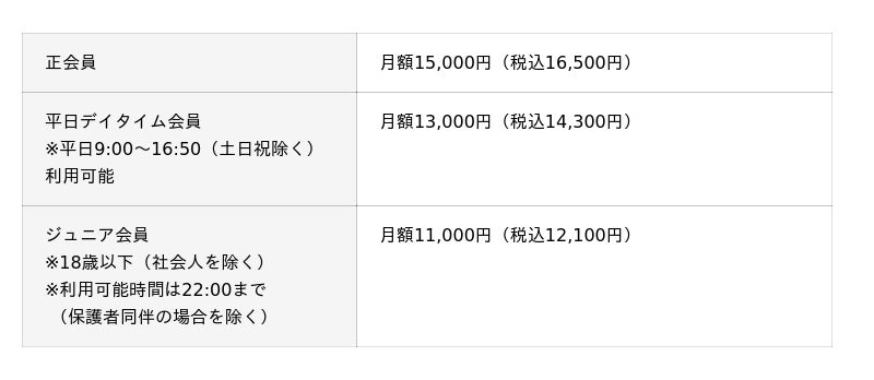 ※各会員プランとも1コマあたり打席料500円(税込550円)が発生します。