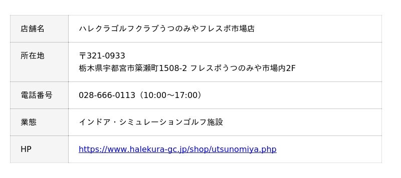 2026年5月1日(金)、「ハレクラゴルフクラブうつのみやフレスポ市場店」オープン予定。宇都宮市の商業施設「フレスポうつのみや市場」2Fにて、自社運営2号店として開業します。