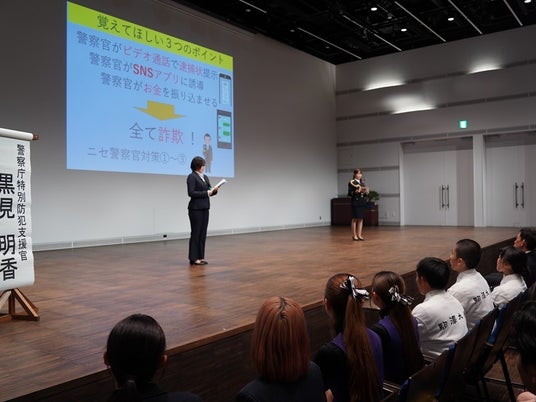 黒見支援官はイベント冒頭「特殊詐欺は日々新しい手口が出てきており、どのような手口があるか、最新の手口を知ることが、まず対策の第一歩だと思います。」と特殊詐欺対策に関する知識をつける重要性を訴えました。