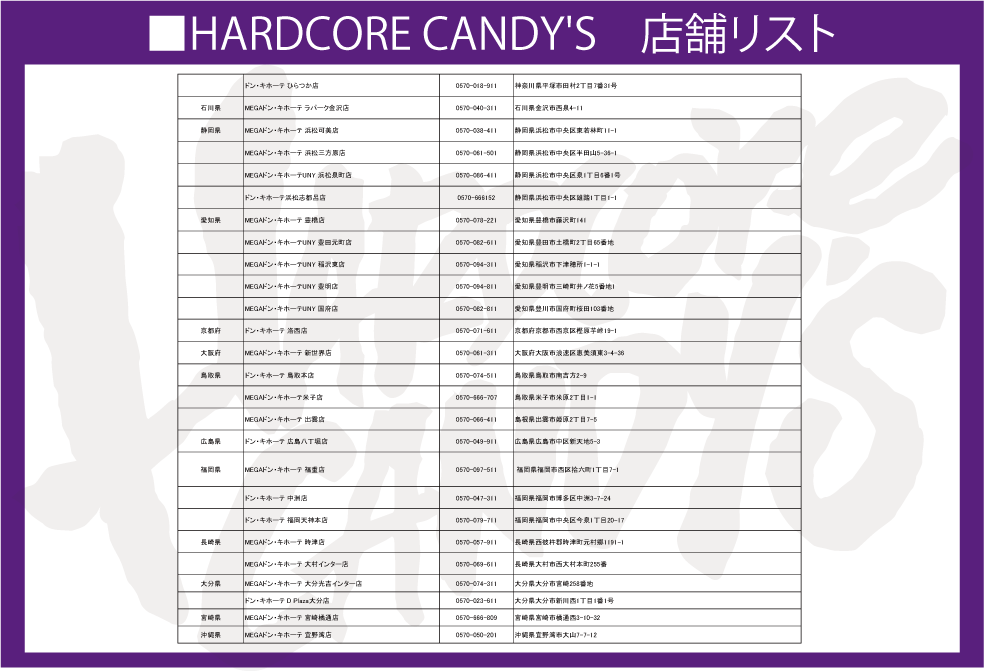 アパレルOEMメーカーである株式会社ベスティグローバル(本社:東京都中央区、代表取締役社長:横堀直之)は、有限会社ハードコアチョコレートがライセンス管理を行うもと、同社セカンドブランド「ハードコアキャンディーズ」の商品を、全国のドン・キホーテ店舗(一部店舗を除く)にて展開いたします。(※本企画では、有限会社ハードコアチョコレートがライセンス契約の管理およびデザイン監修を担当し、ベスティグローバルは商品企画・制作を担います。)