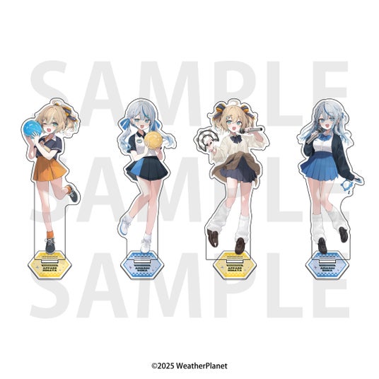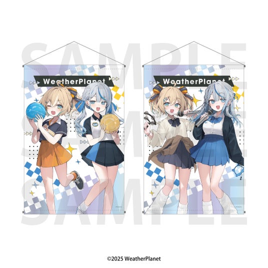 WeatherPlanetの2人がラウンドワンに遊びに来てくれました!学生服でカラオケを楽しむ姿と、ボウラー衣装でボウリングに挑戦する姿を描き下ろししております。描き下ろしイラストを使用したコラボならではの新作アイテムが多数登場します。
