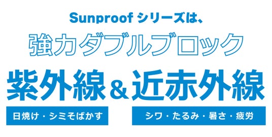 SunproofFカテゴリーの商品は すべてUPF50+、近赤外線70%以上カット を備え、強い日差しの中でも快適な行動をサポートします。